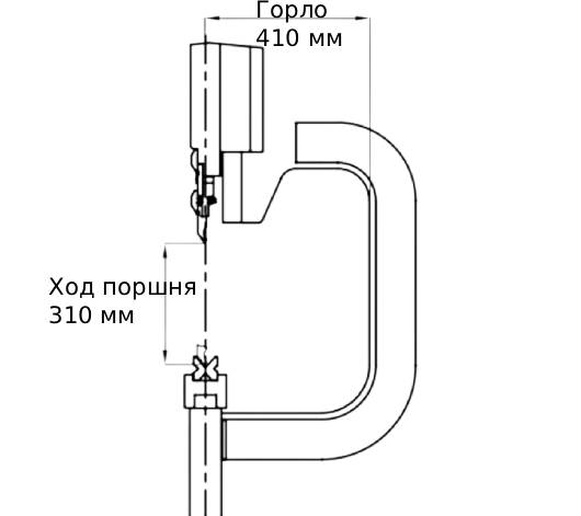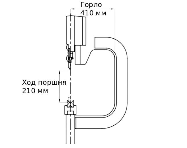 • Ход 210 мм, глубина обработки 410 мм