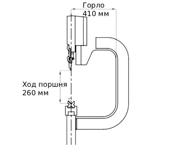 • Ход 260 мм, глубина обработки 410 мм