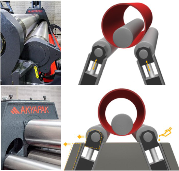 Для вирішення цієї проблеми компанія Akyapak впровадила систему ADCS (Akyapak Deflection Compensation System), яка компенсує прогин нижнього валу. Завдяки ADCS можна прокатувати листи різної товщини з мінімальними відхиленнями, забезпечуючи точну циліндричну форму.