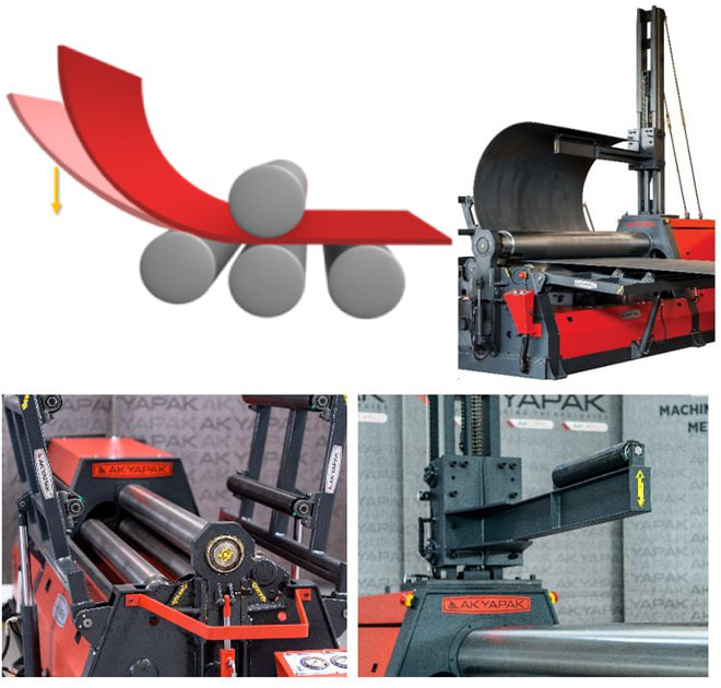 Чотиривалкова модель Akyapak AHS пропонує надійне та високоточне рішення для гнуття й прокатки металу. Вона ідеально підходить для обробки листів товщиною від 2 до 200 мм і шириною від 500 до 12 000 мм.