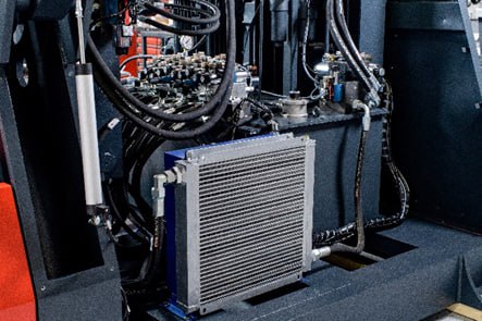 Для верстатів серії AHS передбачено масляний повітряноохолоджувач, який забезпечує стабільну та безперебійну роботу навіть у спекотному кліматі. Це дозволяє підтримувати оптимальні робочі параметри гідравліки та продовжує термін служби обладнання.
